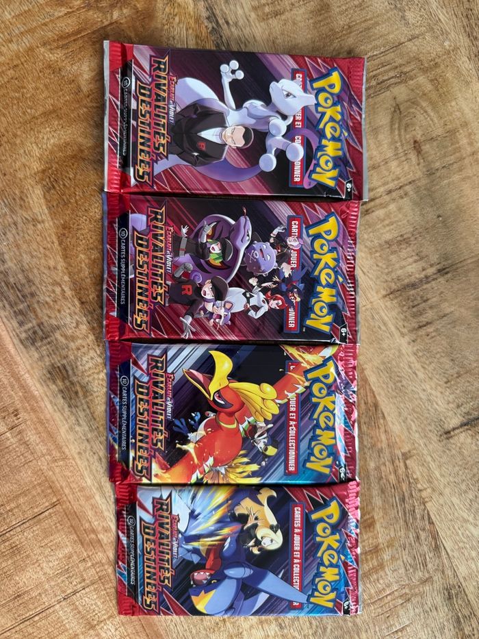 Boosters neufs scellés avec les 4 illustrations. Je peux envoyer d’autres photos à la demande, j’ai d’autres items Pokémon en vente sur mon beebs #artsetcartepokemon #artsetrivalitésdestinées #cartespokemonfr #rivalitésdestinées #rivalitésdestinéesfr