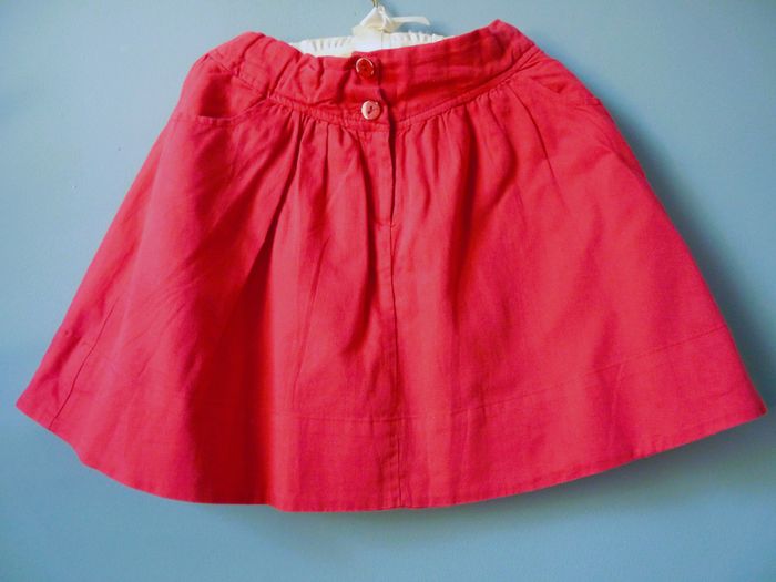 Jupe Fille Jacadi 8 ans évasée Lin coton Rouge TBE - photo numéro 1