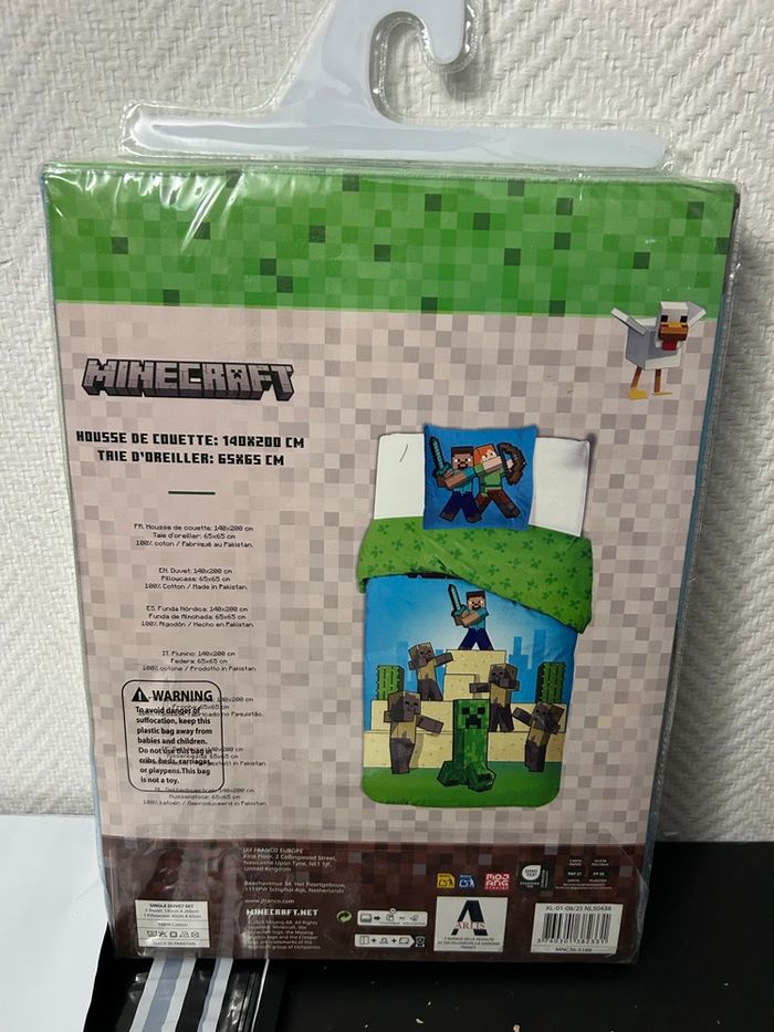 Parure de lit Minecraft 140x200 1 housse d’oreiller 63x63 100% coton