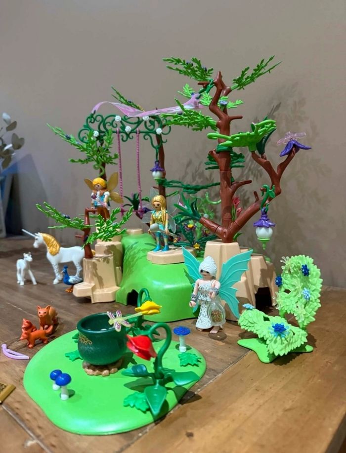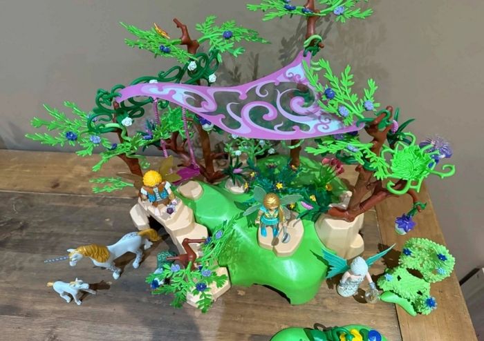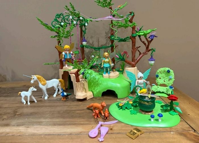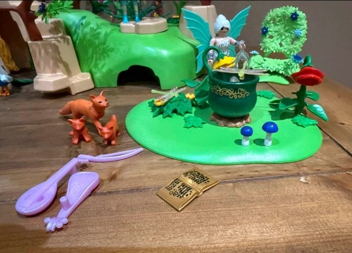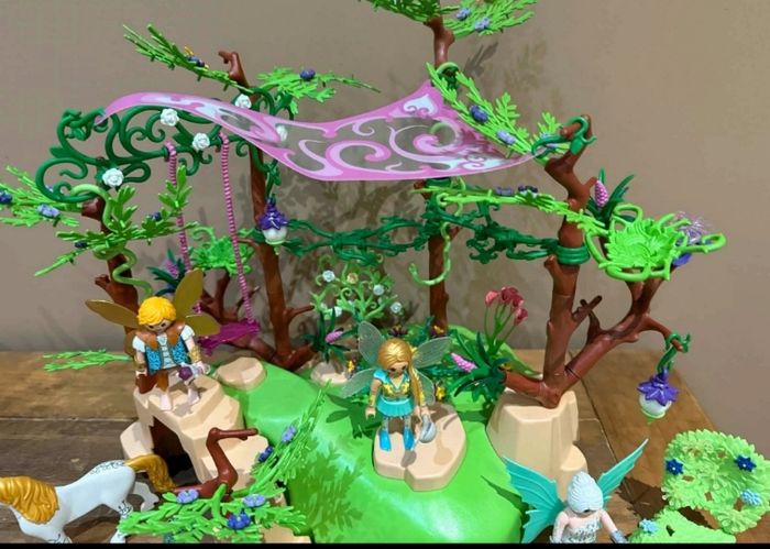 Playmobil set 9132 Fairy World Forêt enchantée Très bon état Complet juste le siège rose manquant mais remplacer par un siège feuillage Playmobil fairies Playmobil set 9132 Fairy World Forêt enchantée Vendu sans boîte et sans notice À vendre ce qui se trouve sur les photos