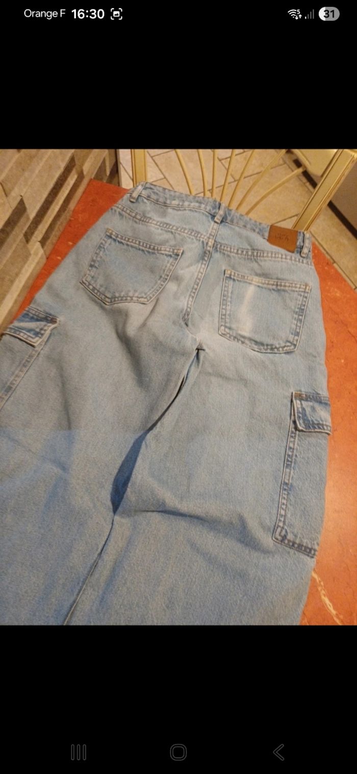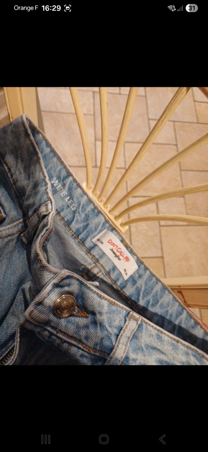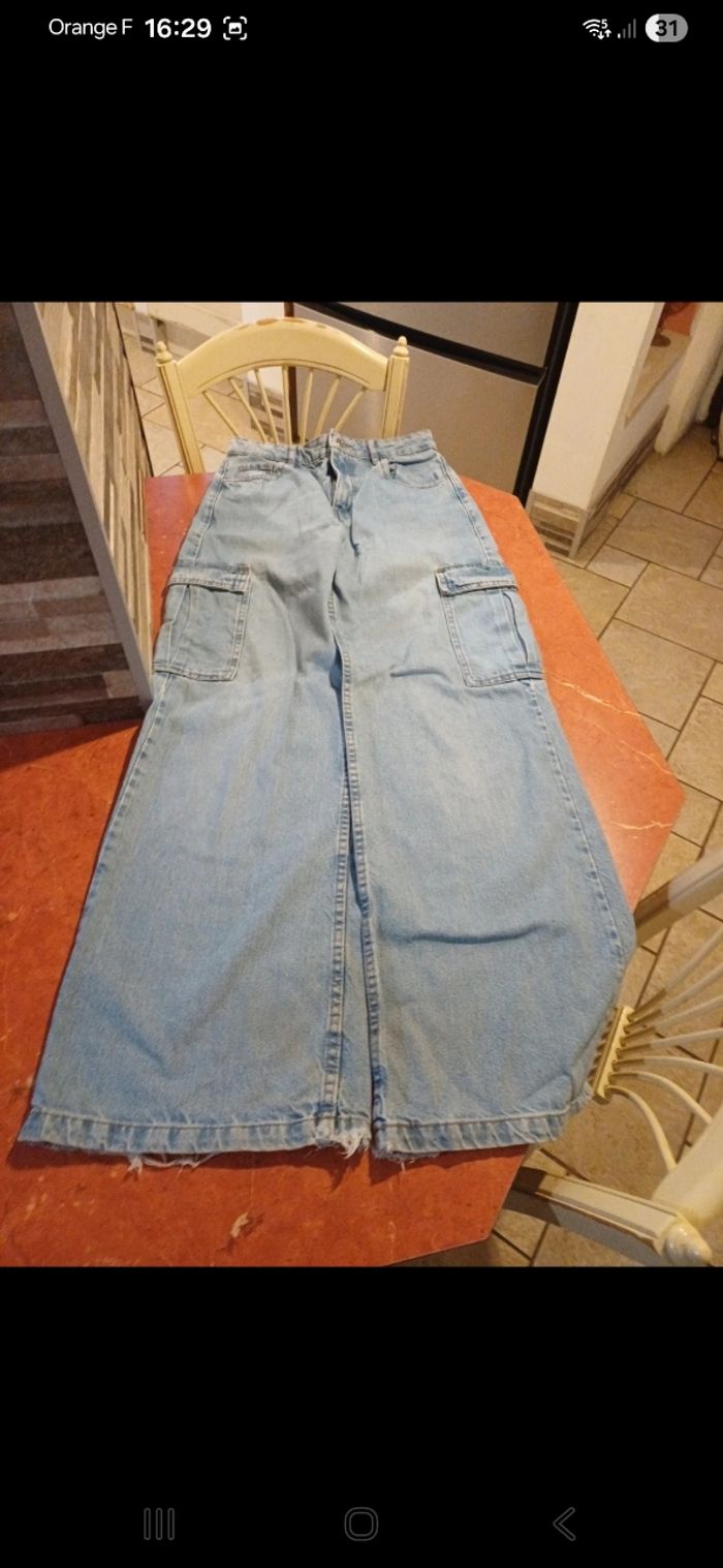 Jean wide leg de chez Jennyfer . Marque de téléphone à la poche arrière et bas très abîmé dû aux frottements.