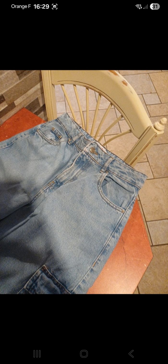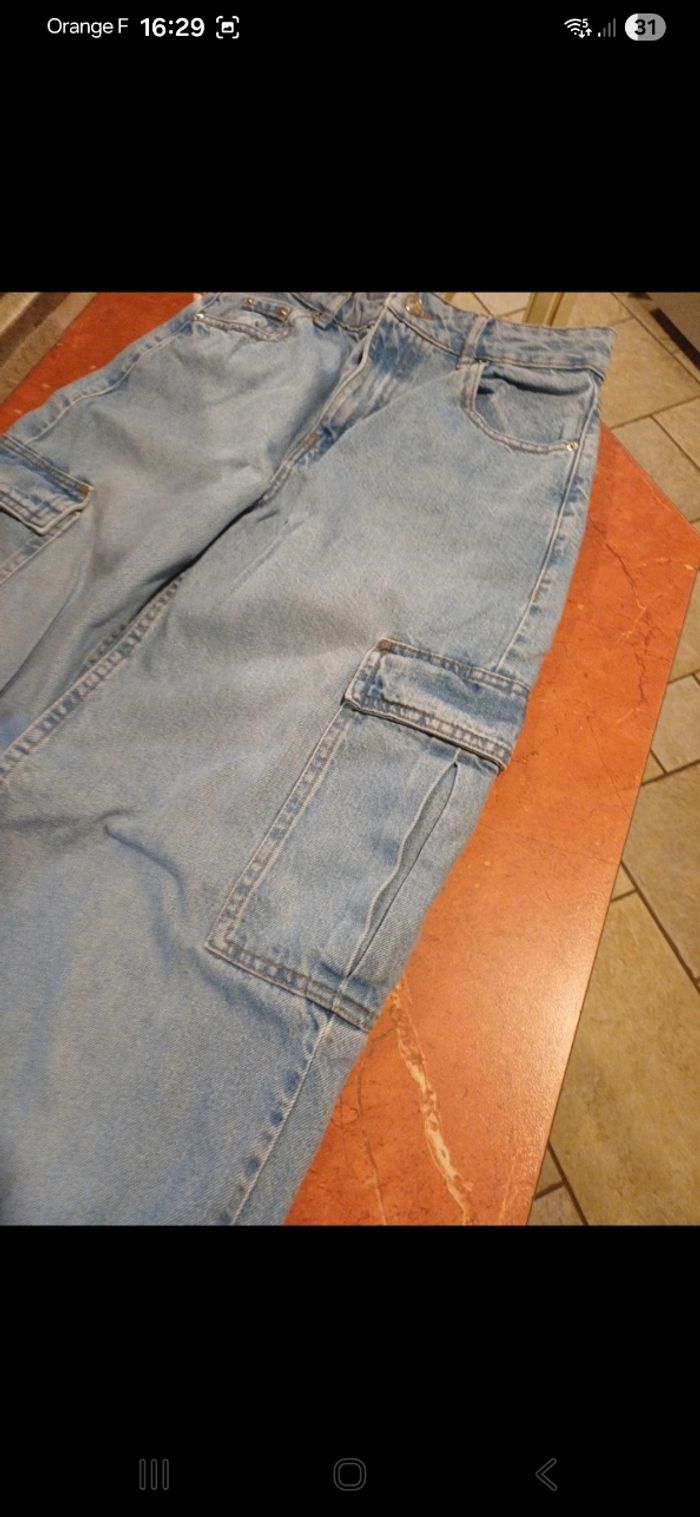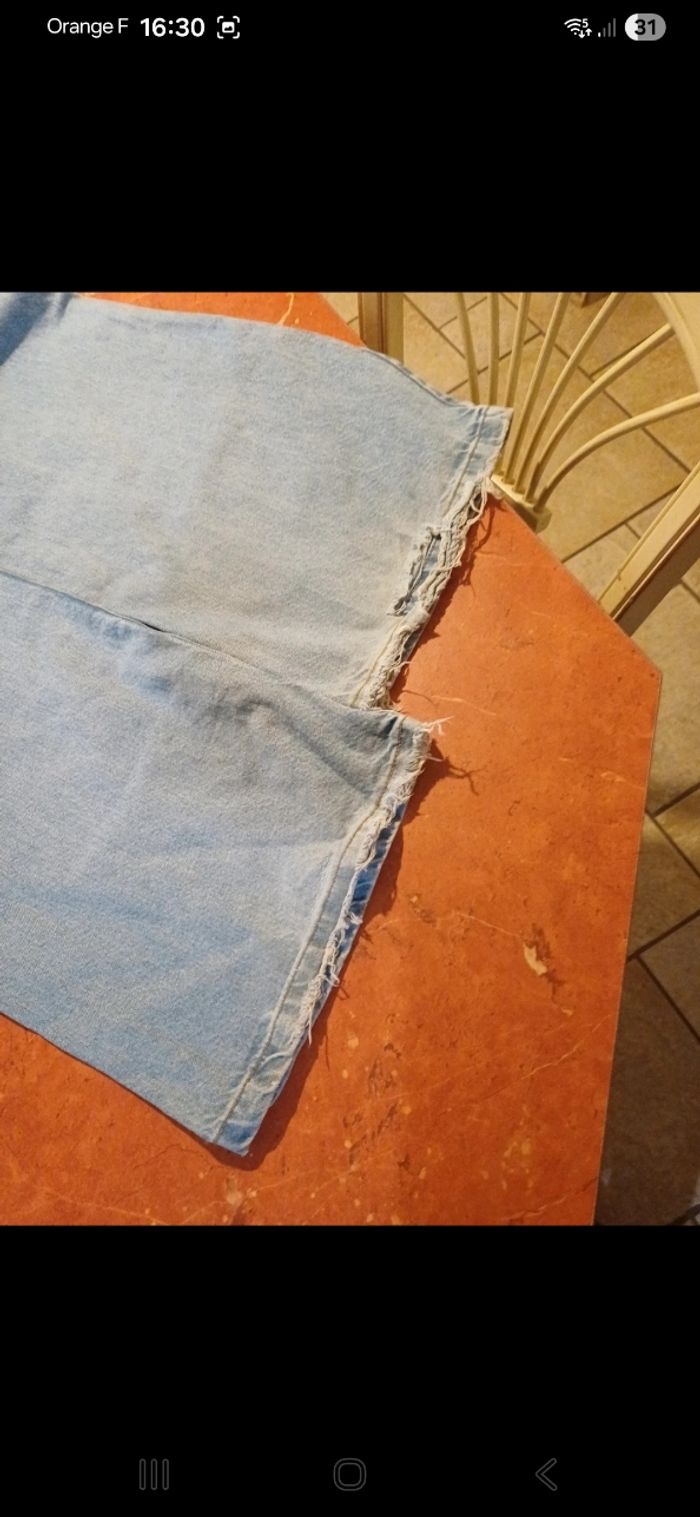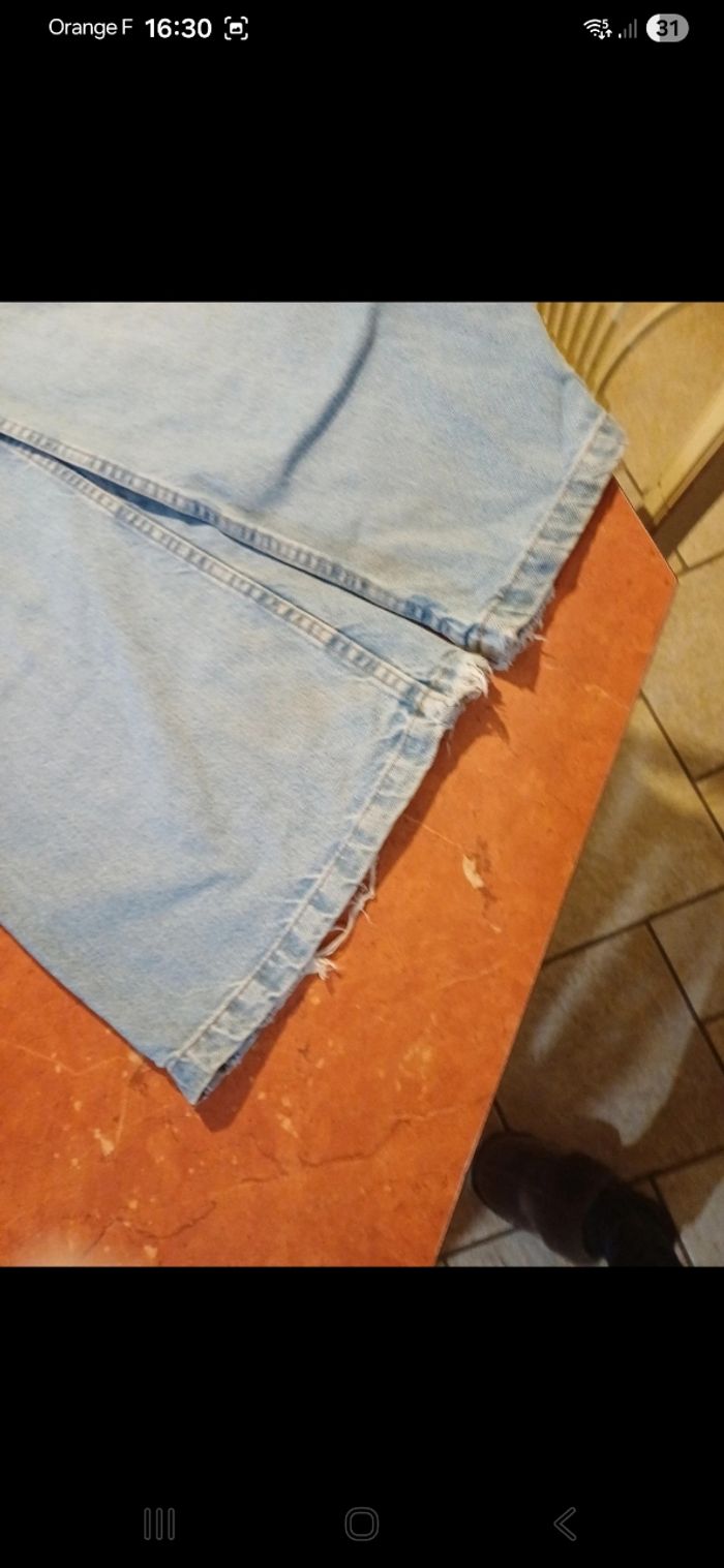 Jean wide leg de chez Jennyfer . Marque de téléphone à la poche arrière et bas très abîmé dû aux frottements.