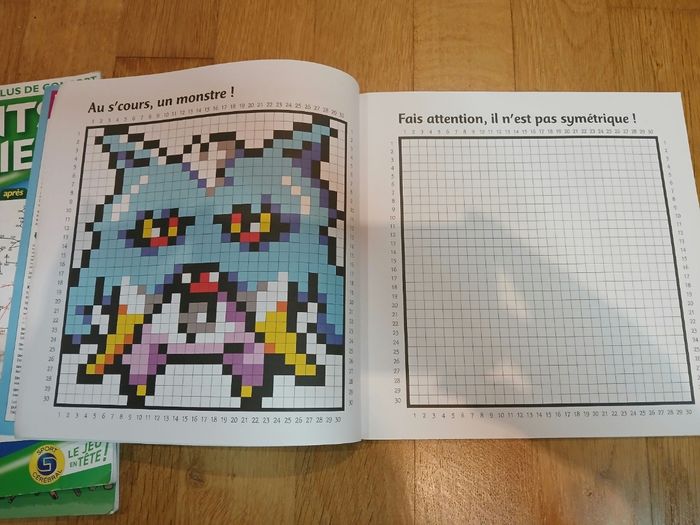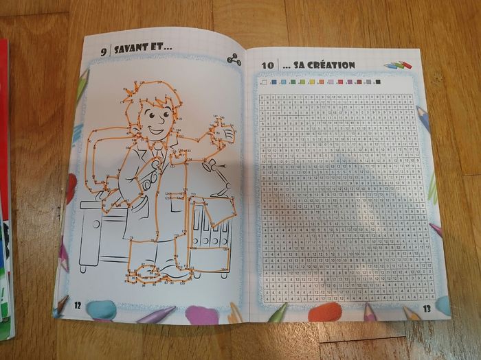 Lot de 4 magazines de jeux pour enfants Mosaïque, coloriage pixel, points à relier, mots mêlés dès 7/8 ans Certaines pages ont été utilisées mais il en reste encore pleins