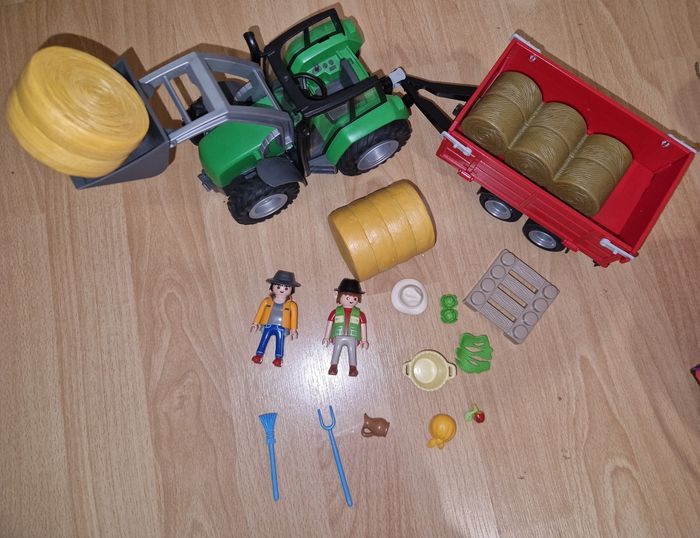 Tracteur + remorque 2 personnages et accessoires Tres bon etat