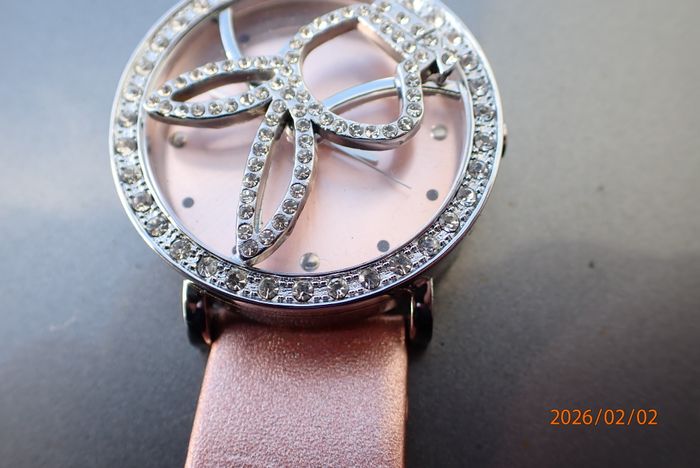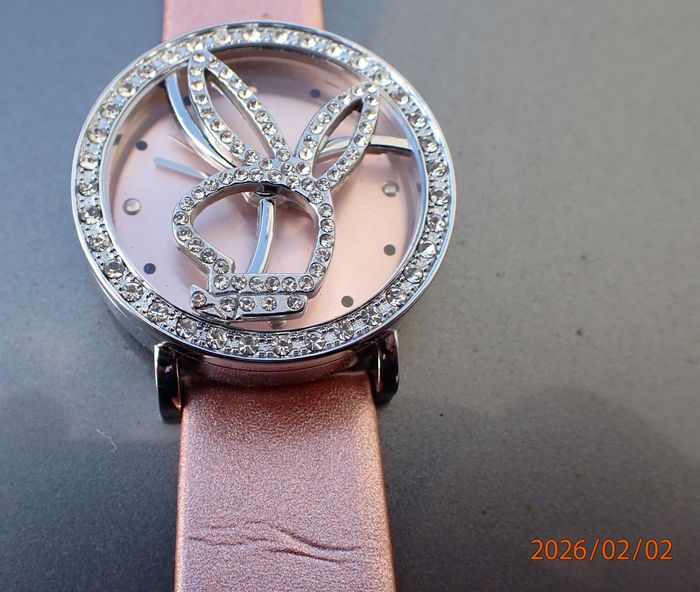 ANCIENNE MONTRE PLAY BOY A LUNETTE P-B ROTATIVE SERTI DE CRISTAUX , TBEG ,PARFAITES FONCTIONS, boitier alliage chromé à lunette sertie de fins cristaux plus un gros lapin P-Boy rotatif , cadran vieux rose métallique , index horaire à gros points aiguilles chromé à fine trotteuse, verre minéral plat intact, réglages par tirage du Bt du coté , fond acier chromé clipsé gravé MLK, Réf NO1505,stainless steel back , Wat Proof 1ATM, et Japan movt,, bracelet en tb état finition pailleté vieux rose à boucle ardillon ajustable de 22/23 cm mouvement modulaire quartz de fiabilité japonaise de parfaite tenue d'heure pour votre confort, la pile serra neuve à l'expédition état de parfaite conservation proche de la perfection, infimes tracettes de manipulation imperceptibles ,voir photos, dimensions ; Diam hors remontoir 40 mm, épaisseur 11,7 mm, bracelet entraxe aux cornes 20 mm infos sur simple demande