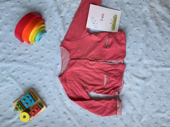 gilet épais réversible 1 coté rose et 1 coté rayé rose et blanc avec poches 3 ans obaibi - photo numéro 7