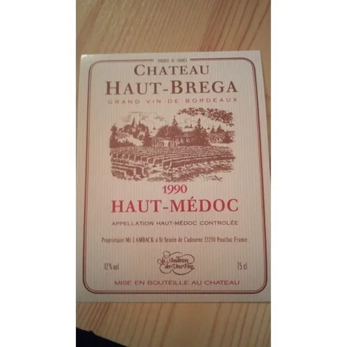 étiquette de vin château haut brega haut Médoc 1990 neuve -