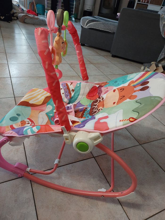 Bonjour Je vends ce transat bébé Marque rocker Comme neuf Des la naissance Bascule ou pas Vibrant Arche de jeux musical Dossier réglable Envoi possible mais pas de locker
