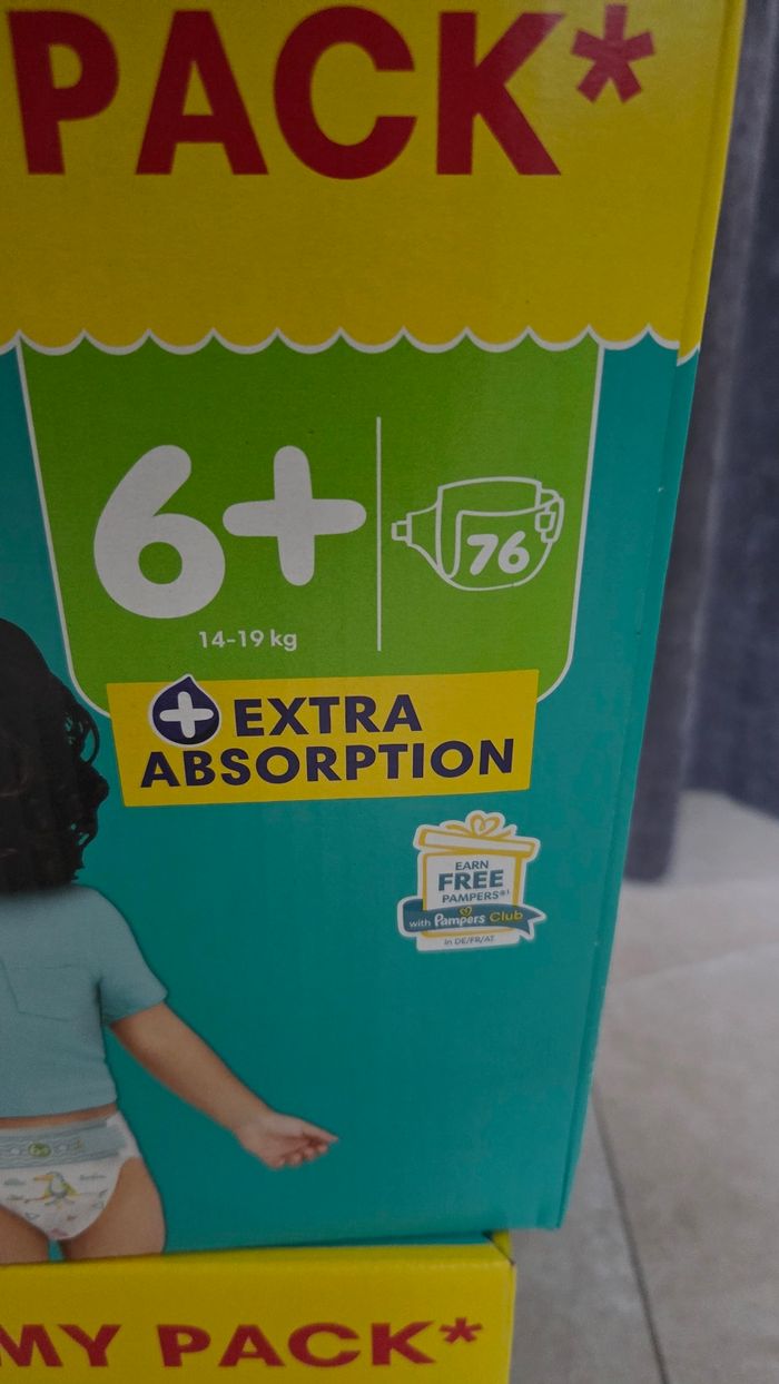 Couches pampers babydry taille 6+ Extra absorbtion 152 couches soit 2 cartons Envoi rapide et soigné