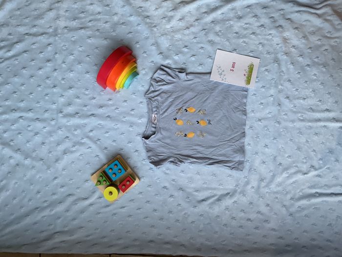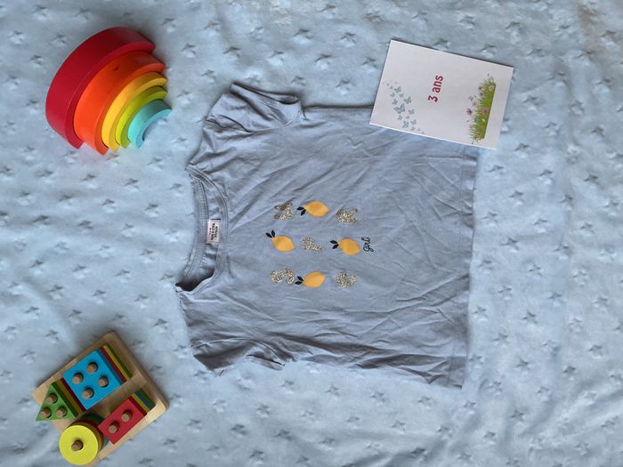 teeshirt manche courtes bleu impression citron devant 3 ans tape à l'oeil