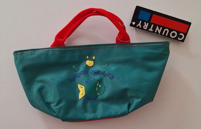 Avec des petites anses rouges, cette sacoche est zippée et imperméable. Dimension : 27 cm au niveau de la zip et hauteur 13 cm. Pour transporter le goûter, pour I'utiliser comme trousse de toilette ou comme trousse d'école. En polyamide, enduit PVC.