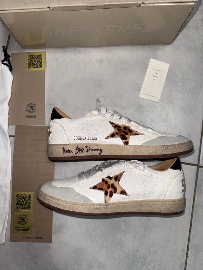 chaussures golden goose en parfait état, jamais portée, vendue car ma maman les a eu en double, taille 39 jamais portée, tout les papiers d’identifications ainsi que la facture seront vendues avec dans le colis, merci, plus d’info? n’hésitez pas 😉