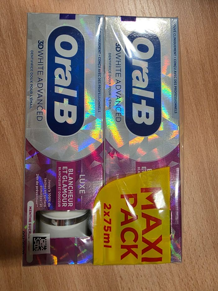 Lot X2 dentifrices Oral B 3D white luxe blancheur et glamour menthe sucrée. Plusieurs quantités disponibles.