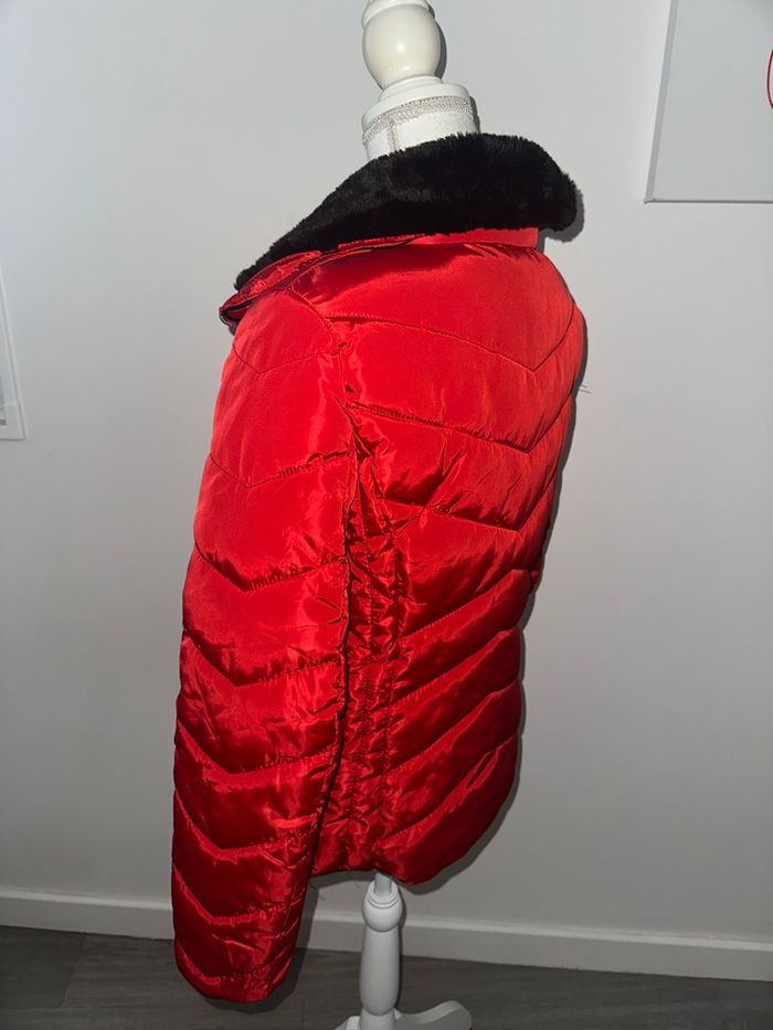Doudoune veste matelassée rouge et noire fausse fourrure Jean Pascale T38 M - photo numéro 6