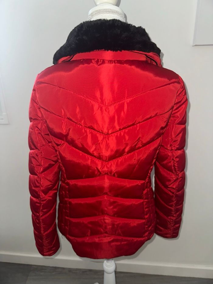 Doudoune veste matelassée rouge et noire fausse fourrure Jean Pascale T38 M - photo numéro 4