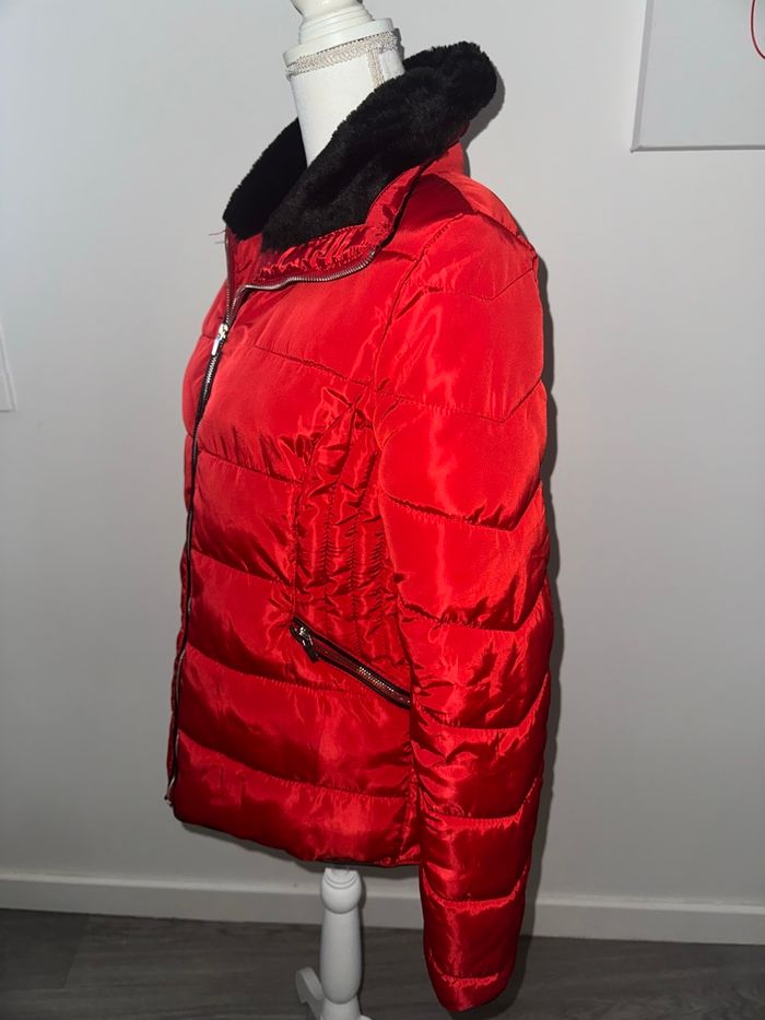 Doudoune veste matelassée rouge et noire fausse fourrure Jean Pascale T38 M - photo numéro 3