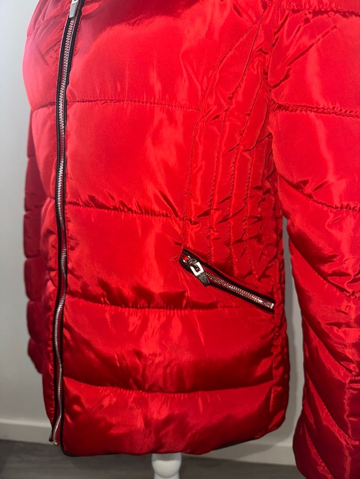 Doudoune veste matelassée rouge et noire fausse fourrure Jean Pascale T38 M - photo numéro 7
