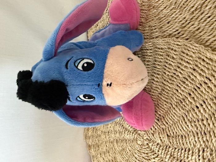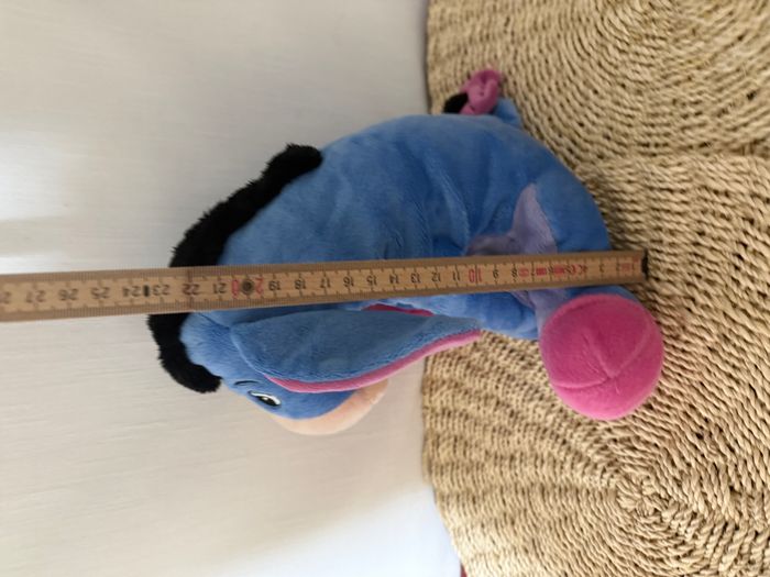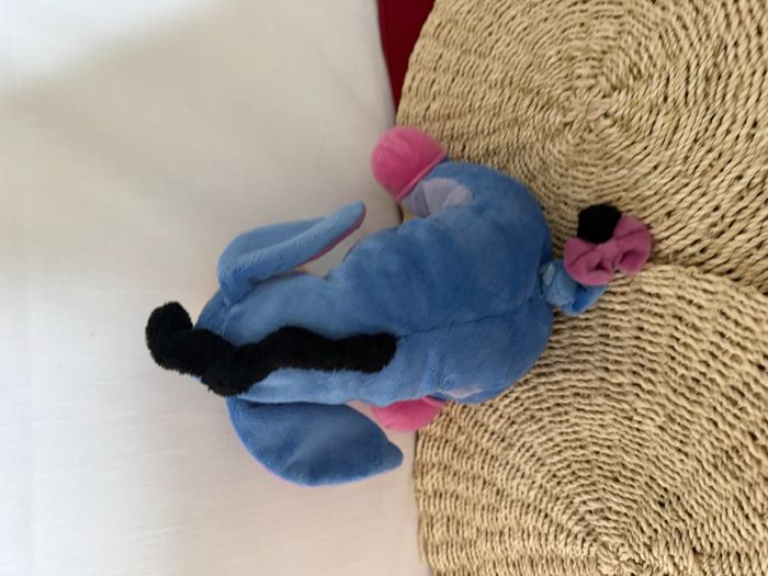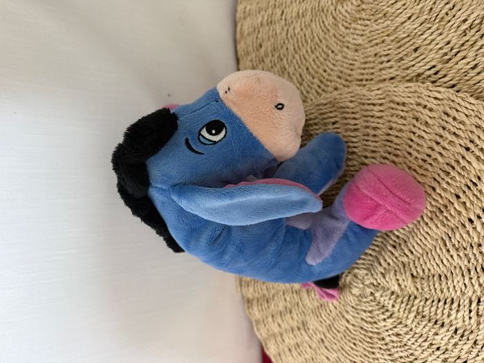 doudou peluche bourriquet bleu rose assis queue scratch crinière velours nicotoy disney  - photo numéro 6