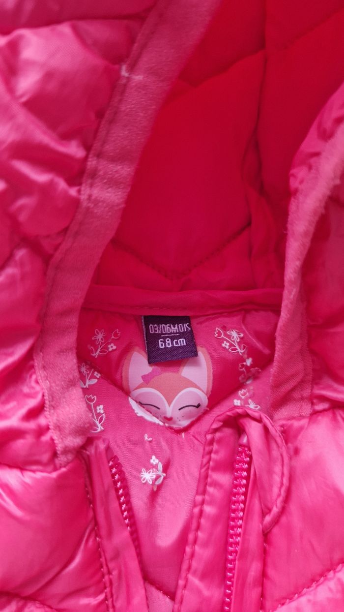Doudoune avec capuche, manches amovibles 3-6 mois 68 cm Sergent major. Rose. Très peu portée.