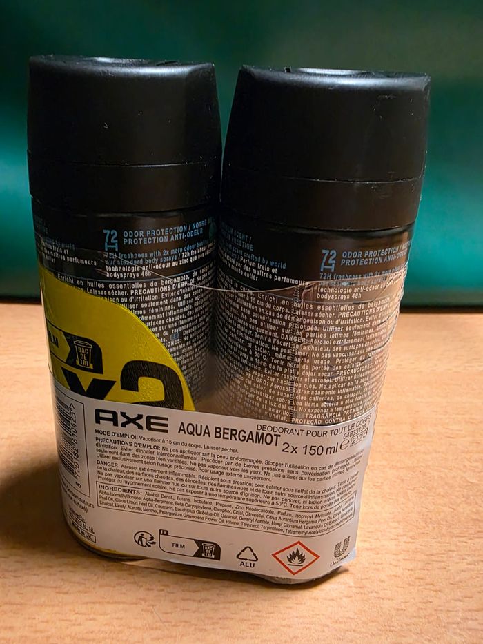Lot 2 déodorants Axe Aqua Bergamot 150ML. Neufs.