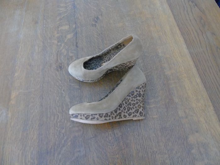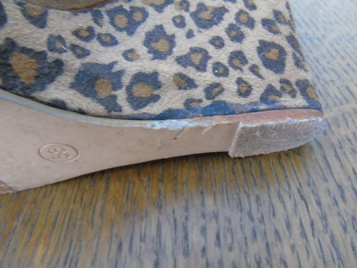 Bon état Motif léopard Un peu abîmé en dessous ( voir photo) Couleur Noir & Marron Pointure 38