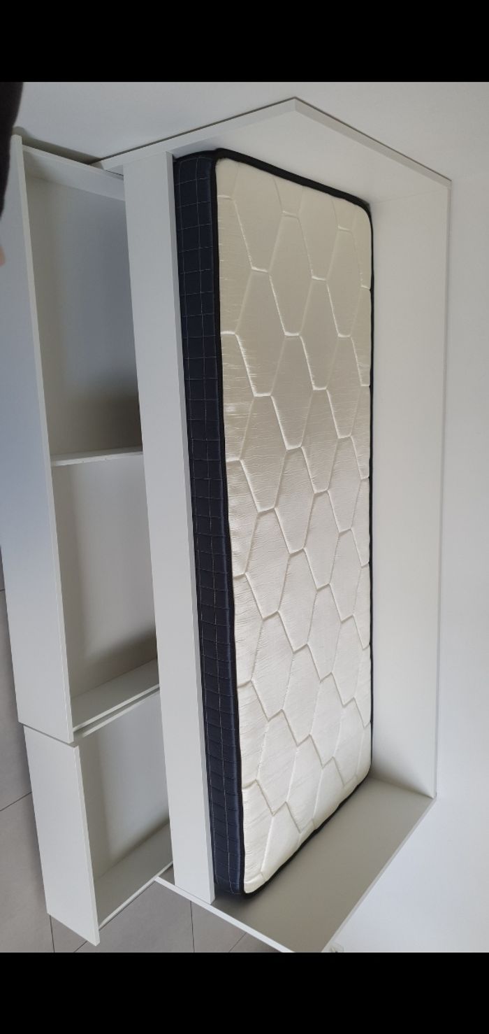 Lit + sommier + matelas + tiroirs roulettes. Dimensions : 90x190 cm
