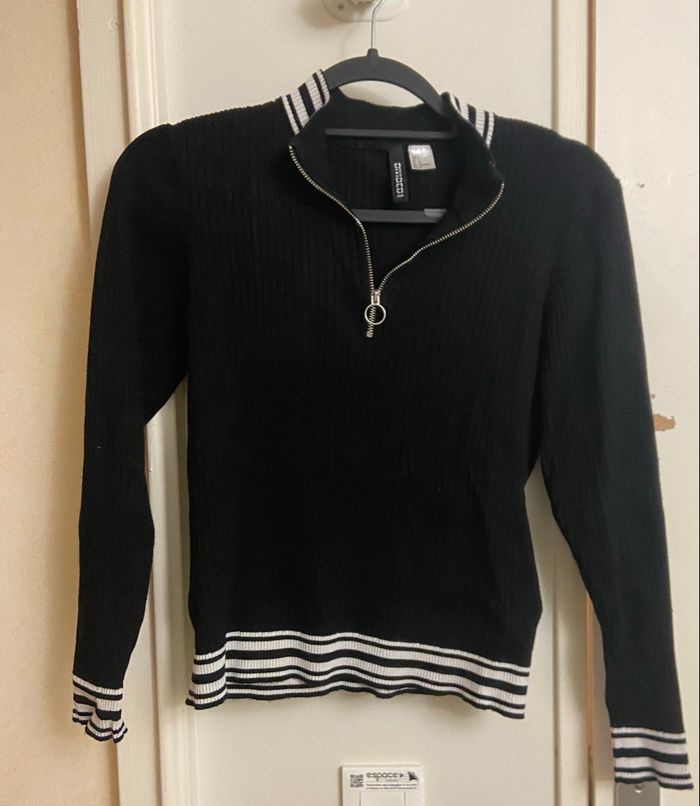 Je vends ce sweat femme noir de la marque Autre. - Type de produit : Sweat - Taille : 40 - L - Couleur : Noir - Marque : Autre Il mesure 41cm de largeur et 53cm de longueur