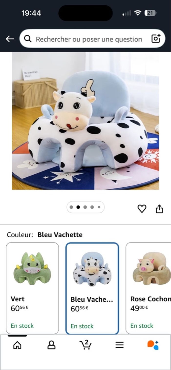 Siège bébé Avec une housse, tache de tomate et l’autre neuve. La mousse et le grand dossier tient bien le corps de bébé. Prix neuf : 60e Prix neuf housse: 20e