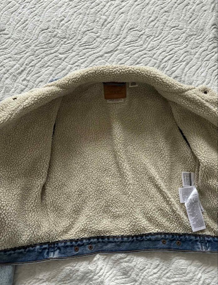 Veste en jean trucker sherpa bleu clair moumoute fourrée Levi’s femme taille S/36 style vintage 90s - photo numéro 9