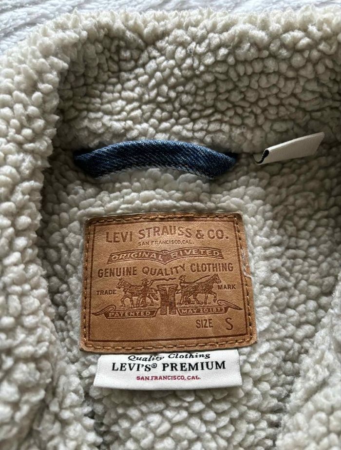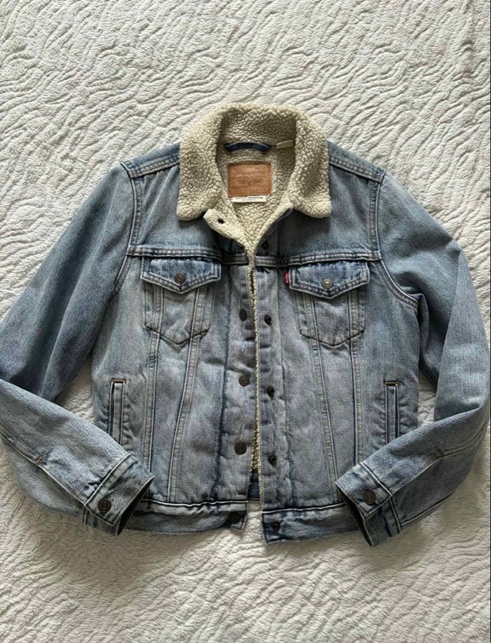 Veste en jean trucker sherpa bleu clair moumoute fourrée Levi’s femme taille S/36 style vintage 90s - photo numéro 1