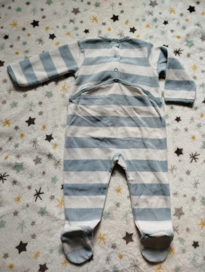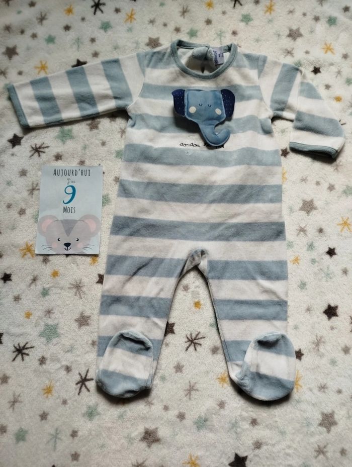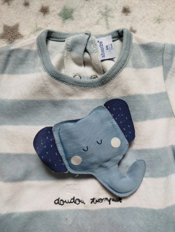 Pyjamas rayé blanc et bleu, tête d'éléphant en relief. Absorba, taille 9 mois. G136