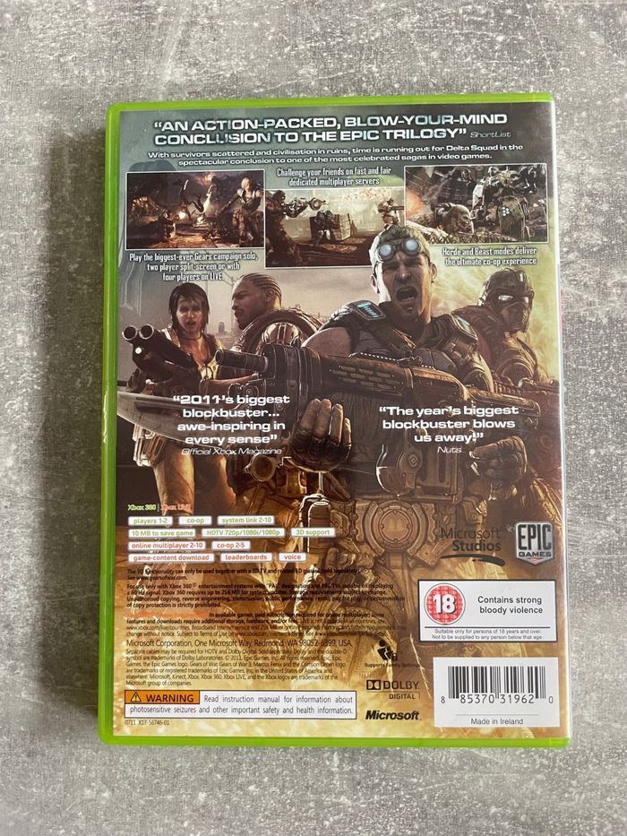 Jeu pour Xbox 360, Gears of wars 3 en anglais.