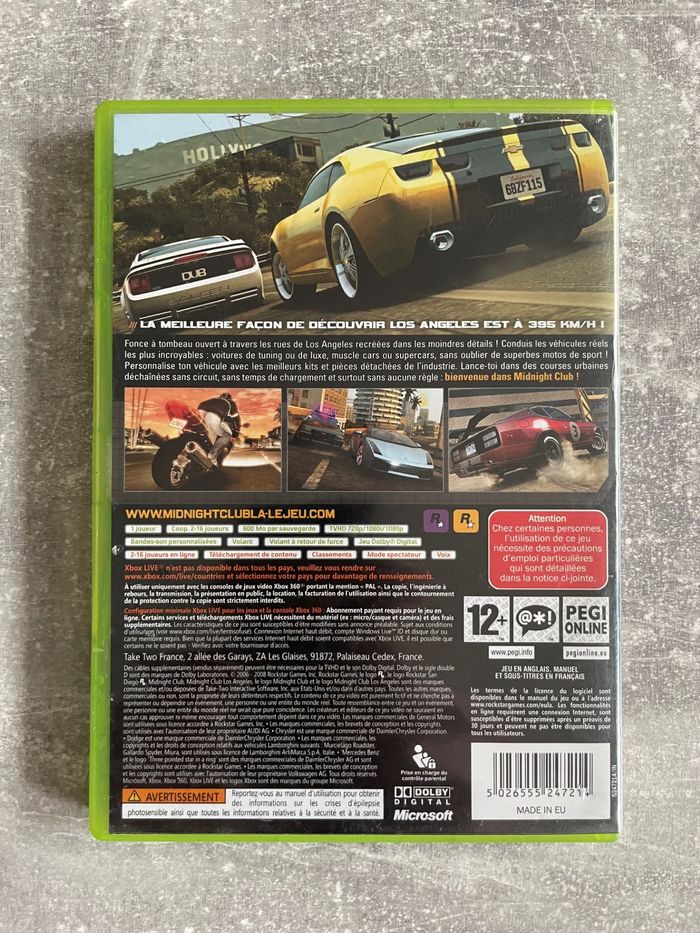 Jeu pour Xbox 360, Midnight club los angeles en français.