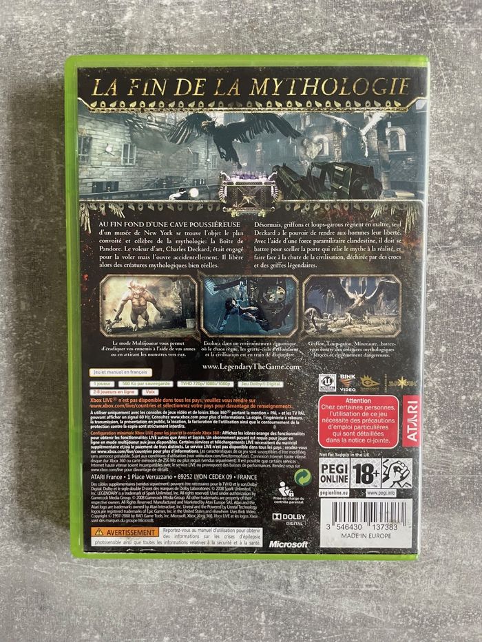 Jeu pour Xbox 360, Legendary en français. Bon état. Complet avec boite et notice. Envoi rapide et soigné.