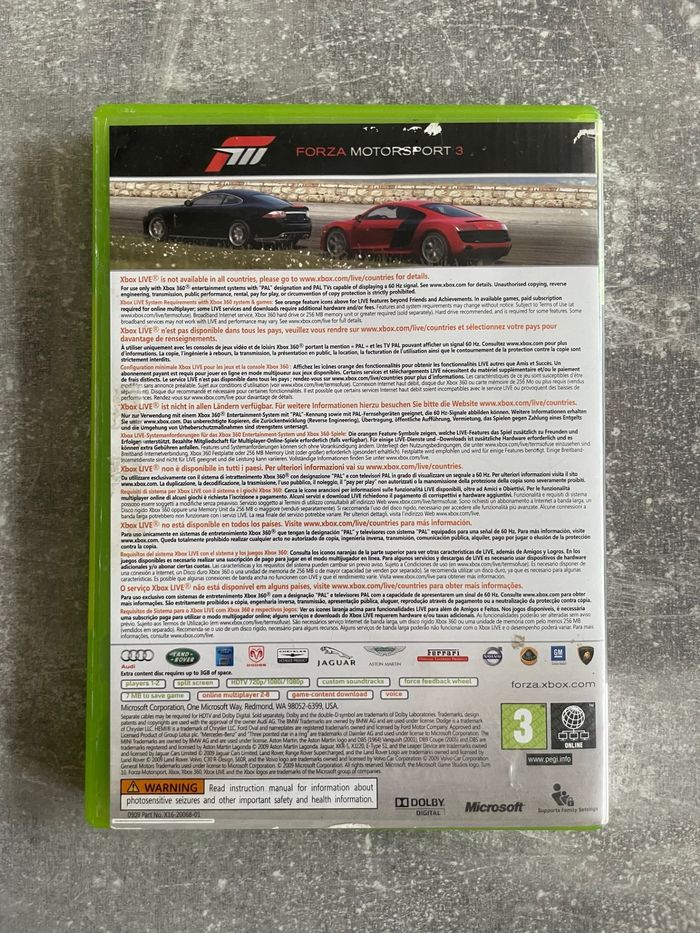 Jeu pour Xbox 360, Forza motorsport 3 en français. Bon état. Edition bundle copy ( jeu venant d'un pack promotionnel de console en boite ). Jaquette un peu déchirée sur le logo xbox 360 ( voir photo ). Complet avec boite et notice. Envoi rapide et soigné.