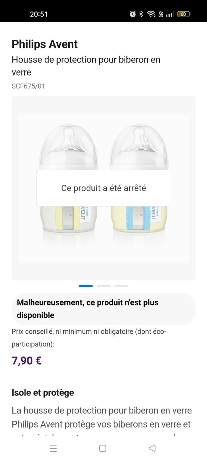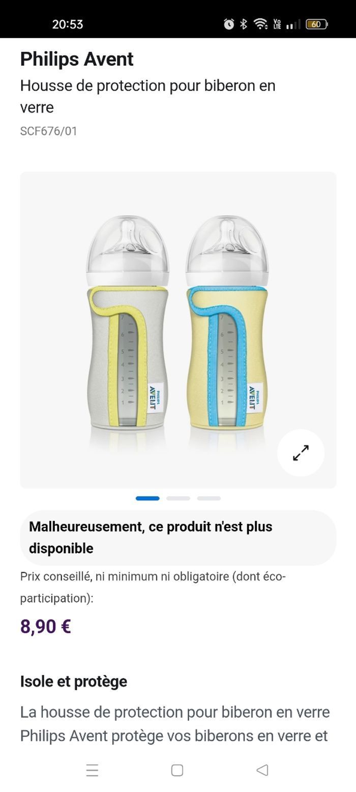 Housse de protection isolante pour biberon en verre Avent 2 housses pour biberon 240mL 1 housse pour biberon 120mL Vendu en lot 4 euros