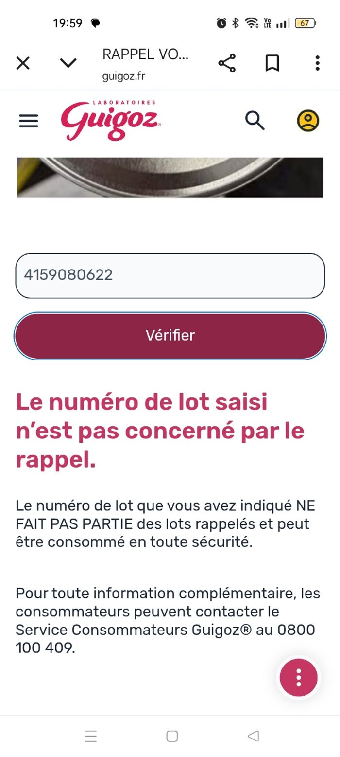 Lait guigozgest premier âge formule épaissie Numéro de lot 4159080622 Péremption 06/2026