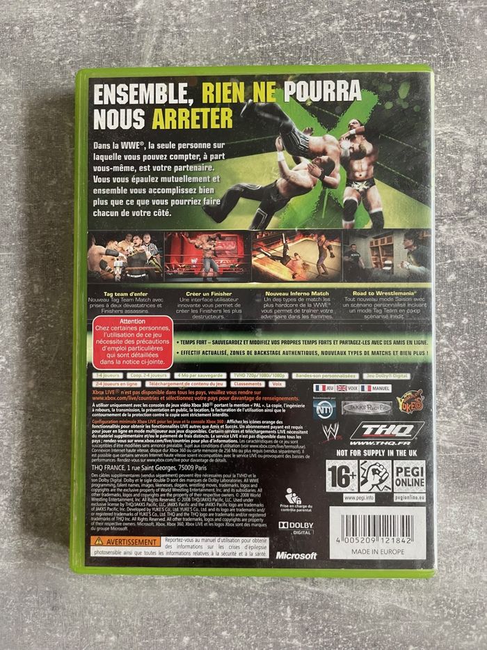 Jeu pour Xbox 360, Smack down VS raw 2009 en français.