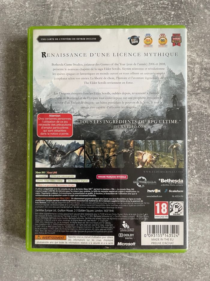 Jeu pour Xbox 360, The elder scrolls V, Skyrim en français.