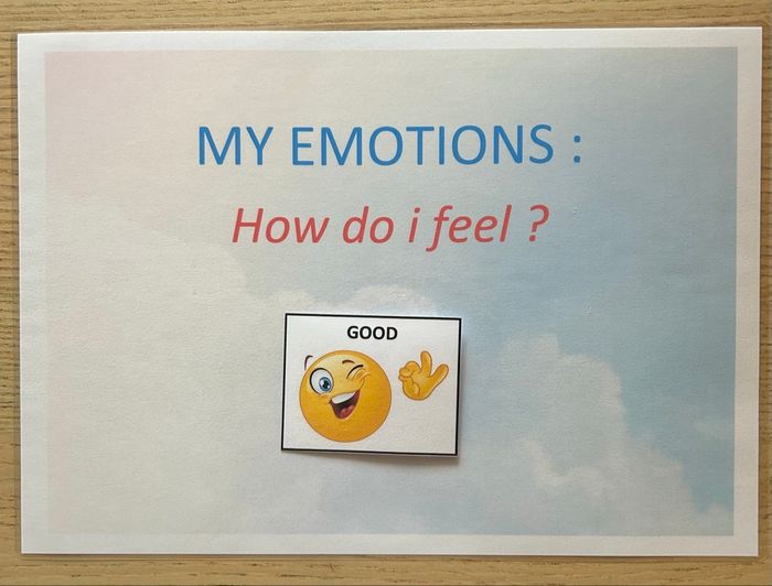 Feuille plastifiée à scratch pour jouer à l’infini. Venir placer son émotion du moment sur la fiche Idéal pour apprendre du vocabulaire en anglais N’hésitez pas à m’écrire pour plus de renseignements