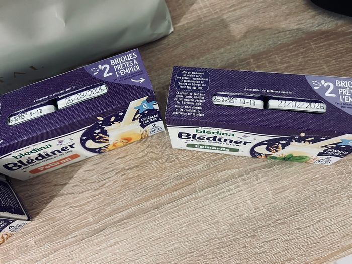 Blediner 2 soupe épinards jusque le 26 février 2 soupe potiron et 4 soupe cartonne jusque mars