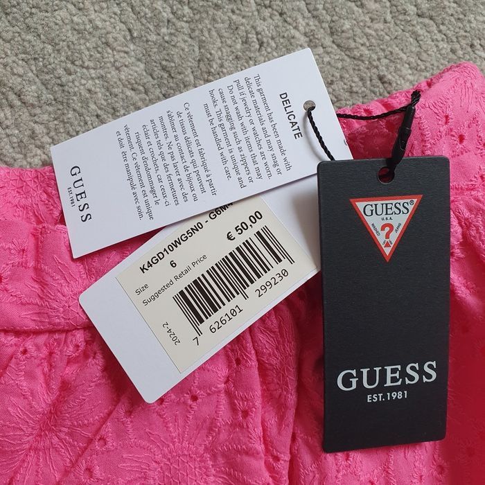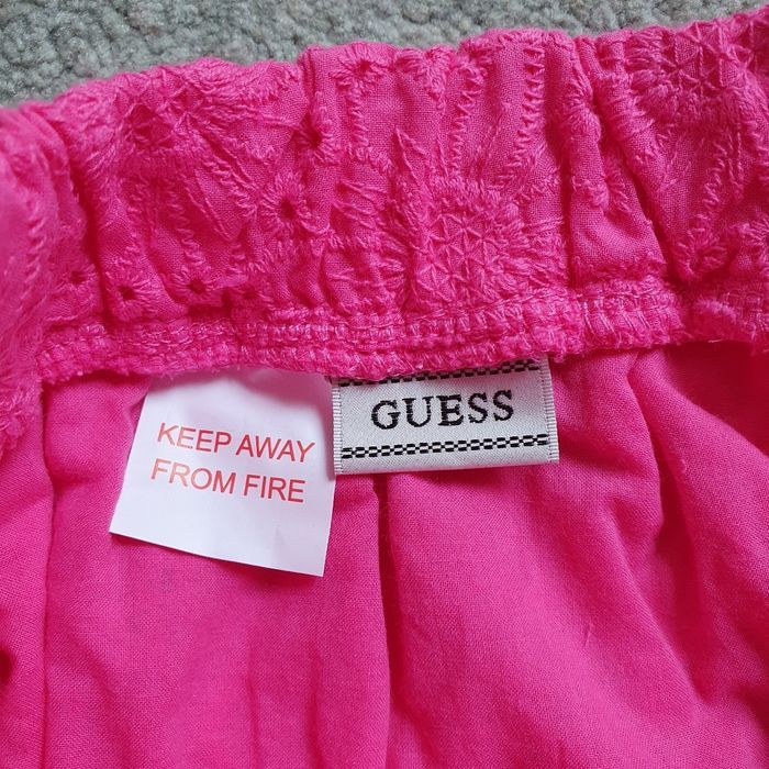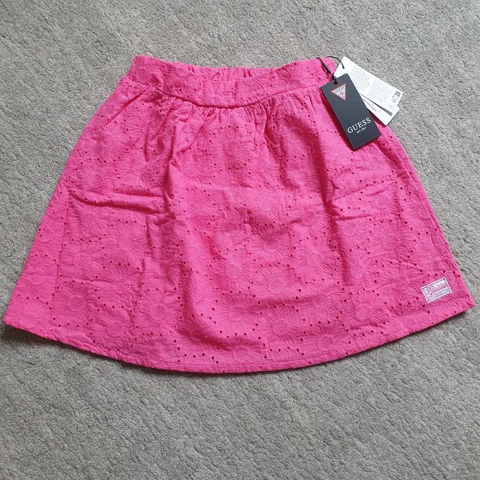 Jolie jupe Guess rose fuchsia, neuve avec étiquette. 100% coton Tissu brodé avec motifs fleurs, plus jolie en vrai que sur la photo. Jamais portée. Maison non fumeur et sans animaux. N'hésitez pas à me contacter pour plus d'informations ou de photos.