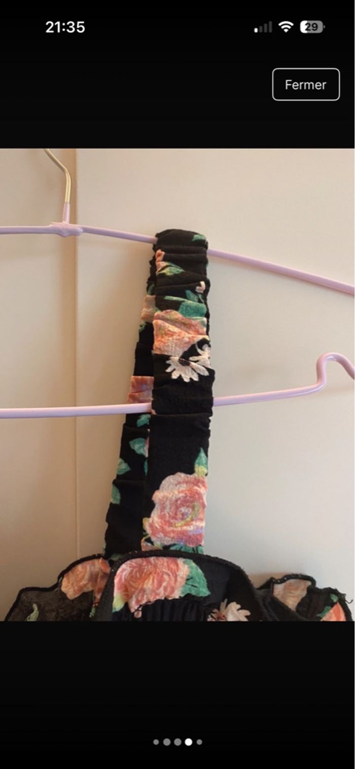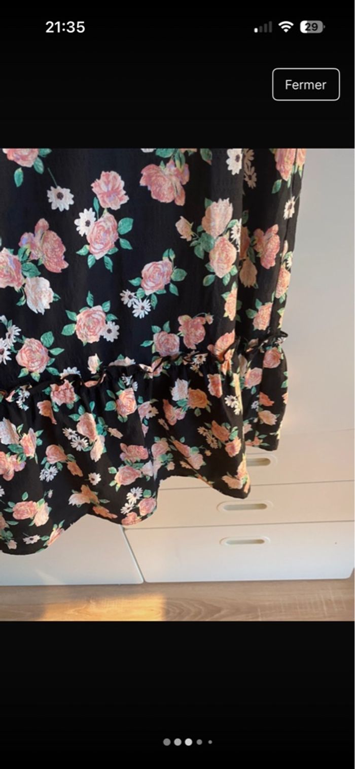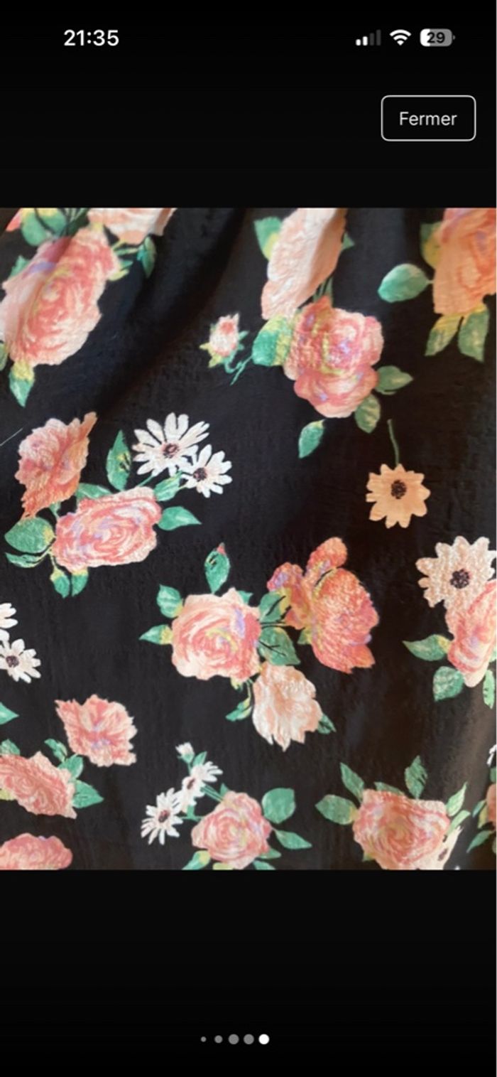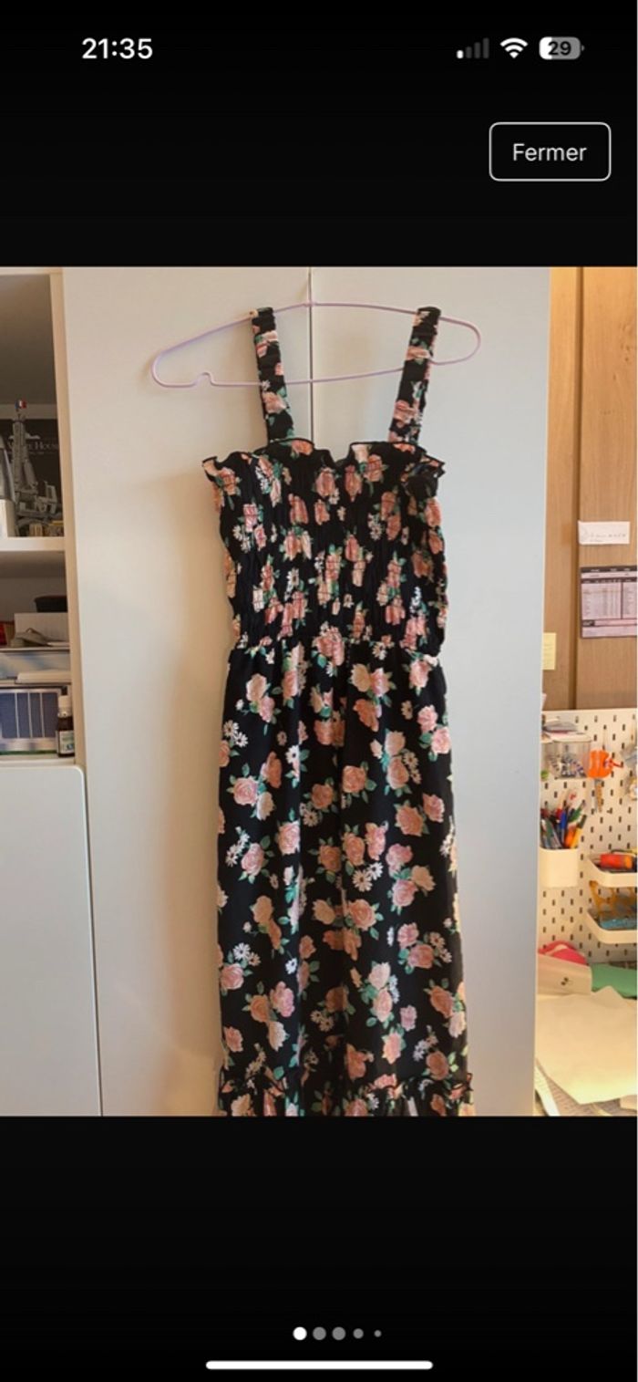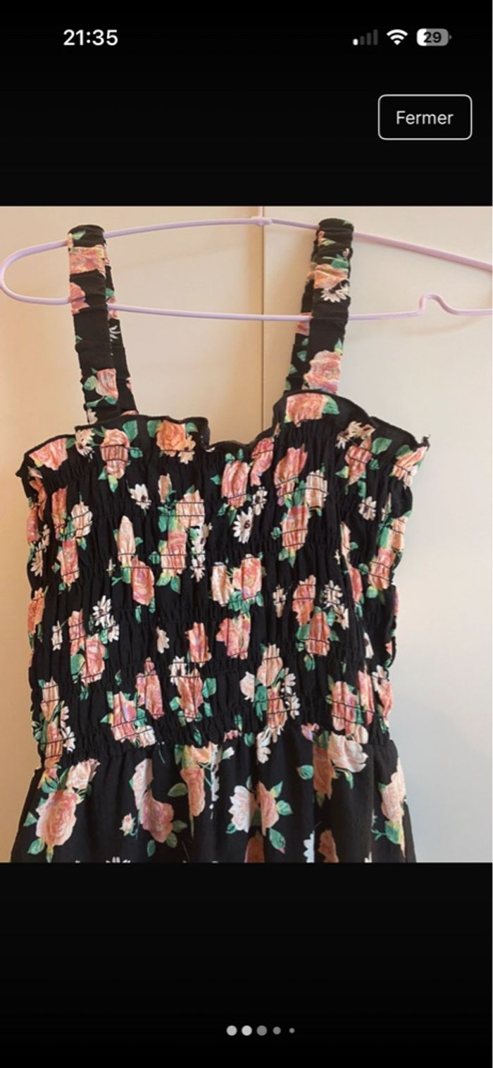 Je vends cette robe longue fleurie avec de larges bretelles. - Type de produit : Robe longue - Couleur : Noir - Motif : Floral - Taille et marque : pas connaissances - Caractéristiques : Bretelles épaisses N'hésitez pas à me contacter pour plus d'informations ou de photos.