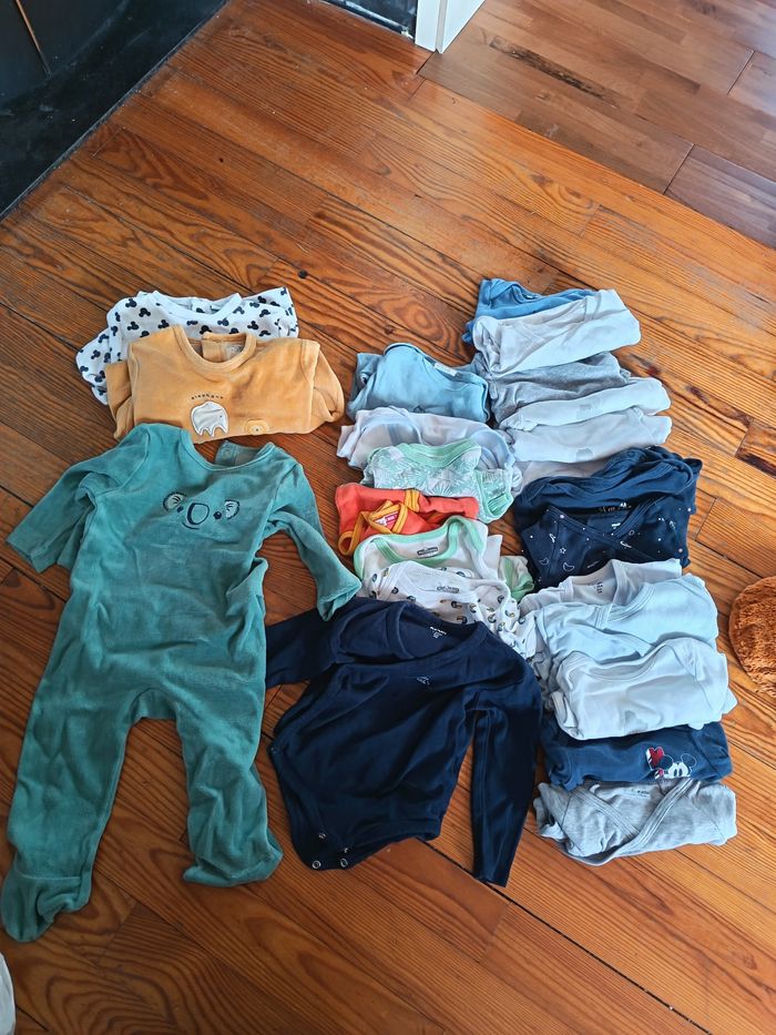 Gros lot 9 mois et 12 mois garçon Bodies et pijamas en très bon état. 1 er photos 9 mois: 10 pijamas velours 3 pijamas léger 2 pantalons 9 bodys manches longues ( dont 2 bodys ACDC 🤩) et 2 bodys manches courtes 2 em photos: 12 mois 14 bodys manches longues 6 bodys manches courtes 3 pijamas velours Toutes marques confondu, Kiabi, orchestra, Okaïdi,TAO, Gémo... Possibilité de vendre les lots séparément si on veut qu' une taille.