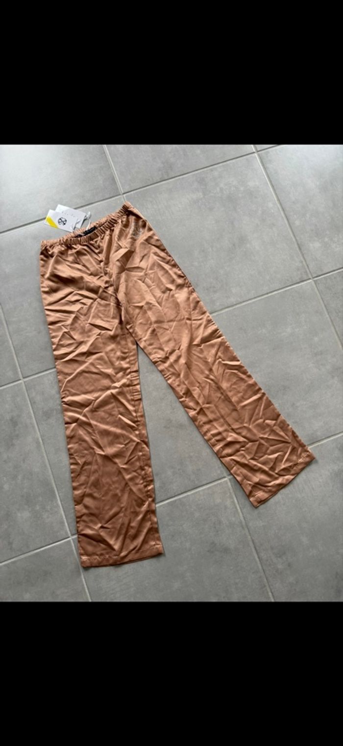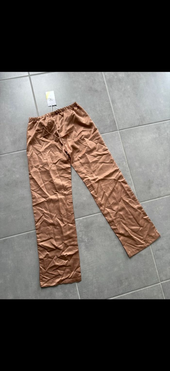 Tout neuf. Style satin. Matière fluide et douce. J'ai un pantalon en plus dans mon dressing. Encore plein de vêtements à mettre dans mon dressing. N'hésitez pas à vous abonner et à lire mon profil. 😉