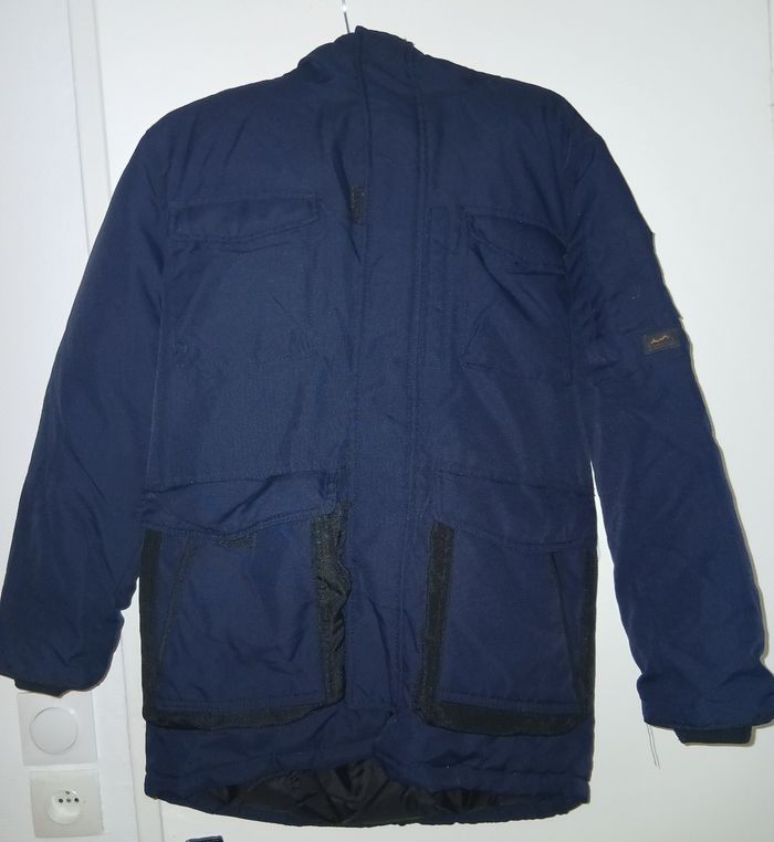 En bon état général, propre et encore bien chaud. Fermeture zip+scratch ⚠️ À noter : sur les poches avant, un côté de l’une des poches s’est décollé (visible sur photo). Cela reste portable, mais une petite réparation peut être faite si souhaité.