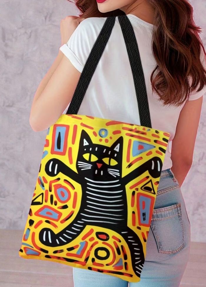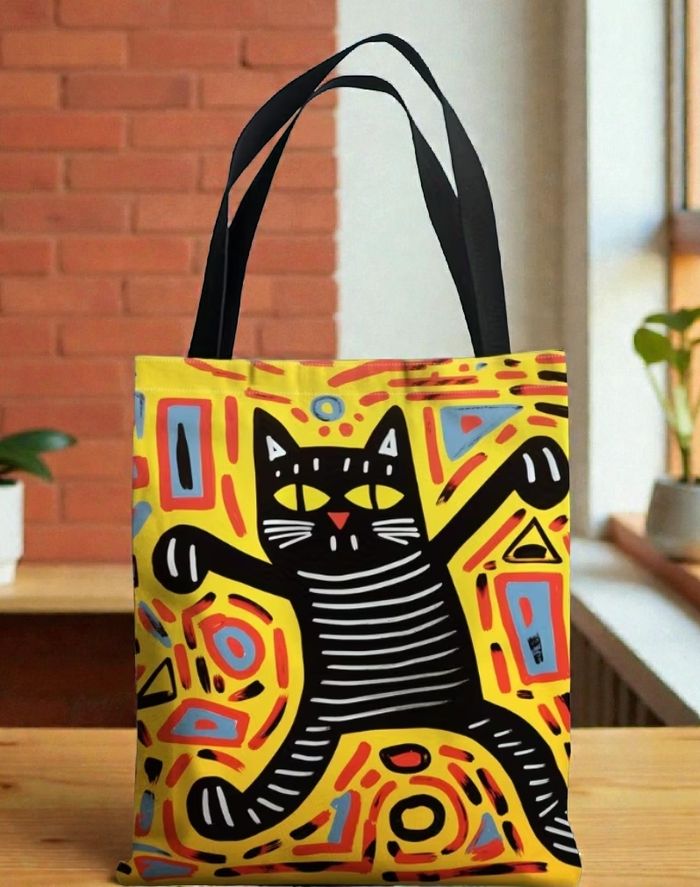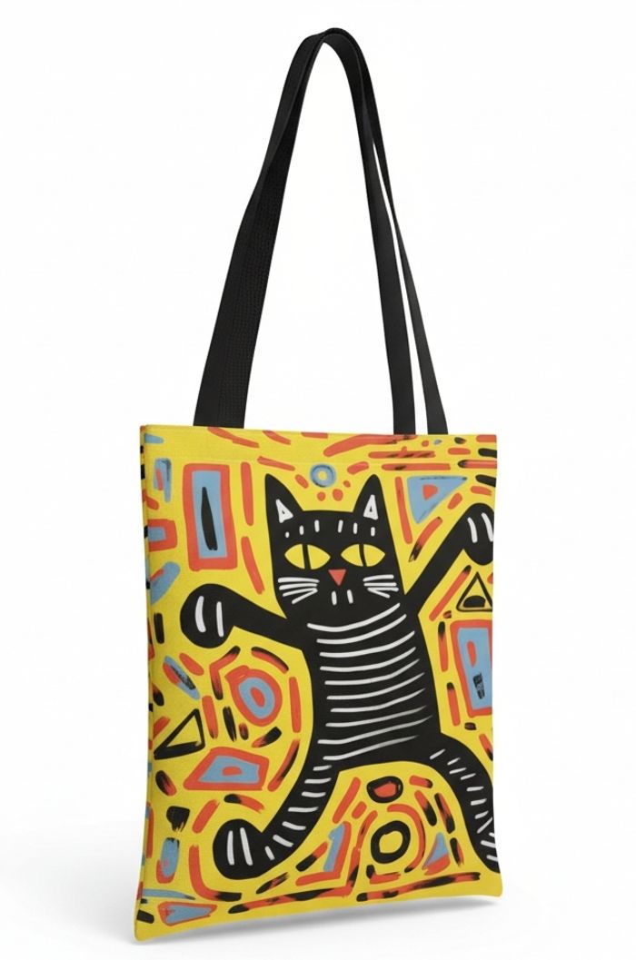Sac fourre-tout toile chaton Graffiti vibrant. Sac fourre-tout artistique. Polyester durable. Lavable en machine. Bandoulière de 25cm. Dimensions 42x34 cm