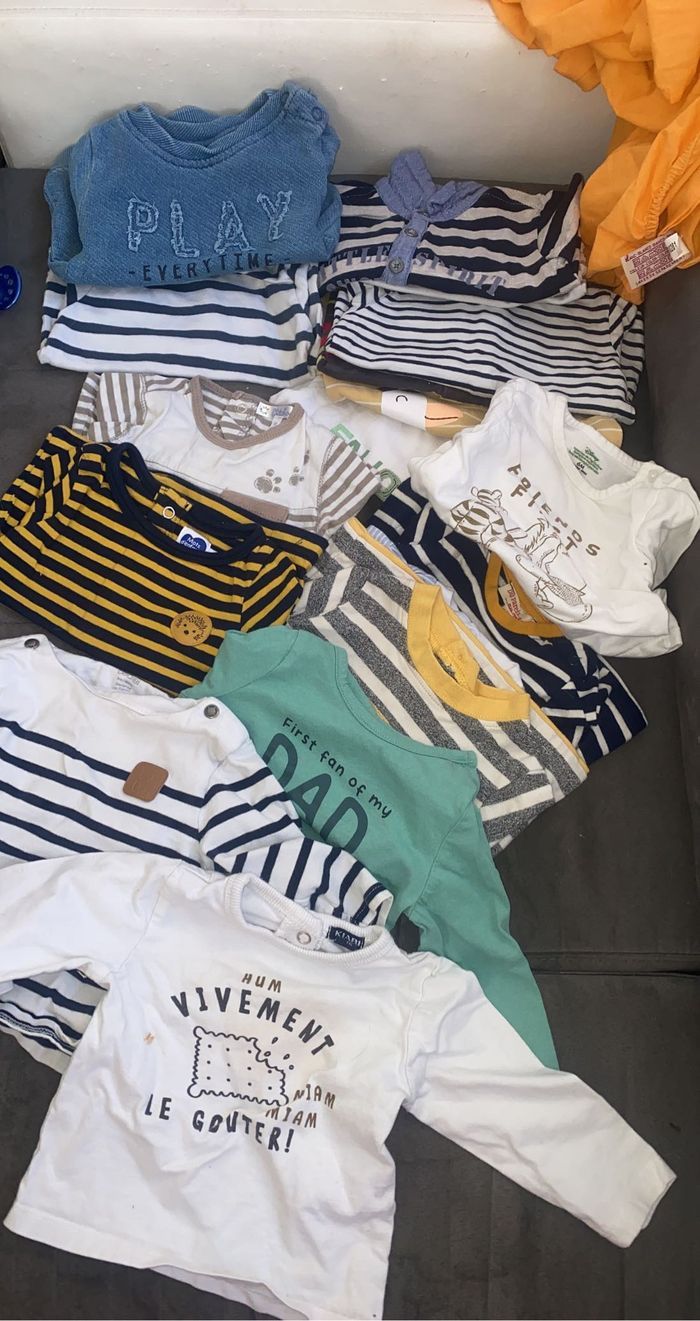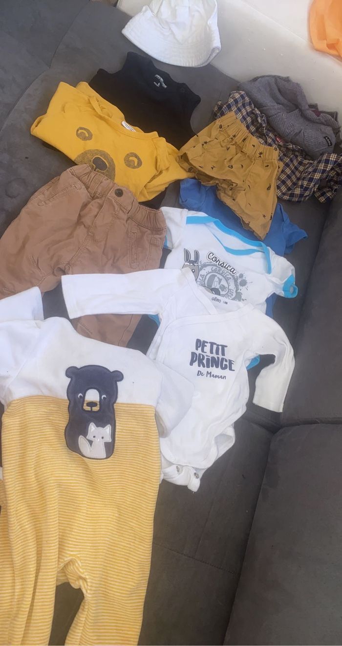 Bonjour. Je vend car besoin de place. Mon fils venant de passer au 9 mois, je me débarrasse de 6 mois. C’est un gros lot, TOUT LES VÊTEMENTS NE SONT PAS EN PHOTOS. C’est en bon état. Y a des choses casi neuf. Pyjama léger et épais Bodys T-shirt MC / ML Pull Pantalon Short Veste et 1 petit manteau. Combinaison couleur moutarde jamais mise 1 EnsembleMickey et 1 ensemble NIKE PRIX NÉGOCIABLE DANS LA LIMITE DU RESONNABLE.