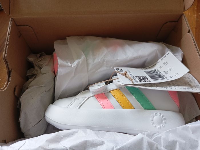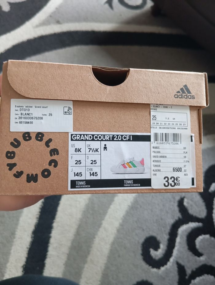 Magnifique paire de baskets Adidas pour fille. Elles sont neuves jamais portées et dans leur boîte d'origine. Pointure 25. ⚠️⚠️⚠️ Baskets AUTHENTIQUE ⚠️⚠️⚠️.