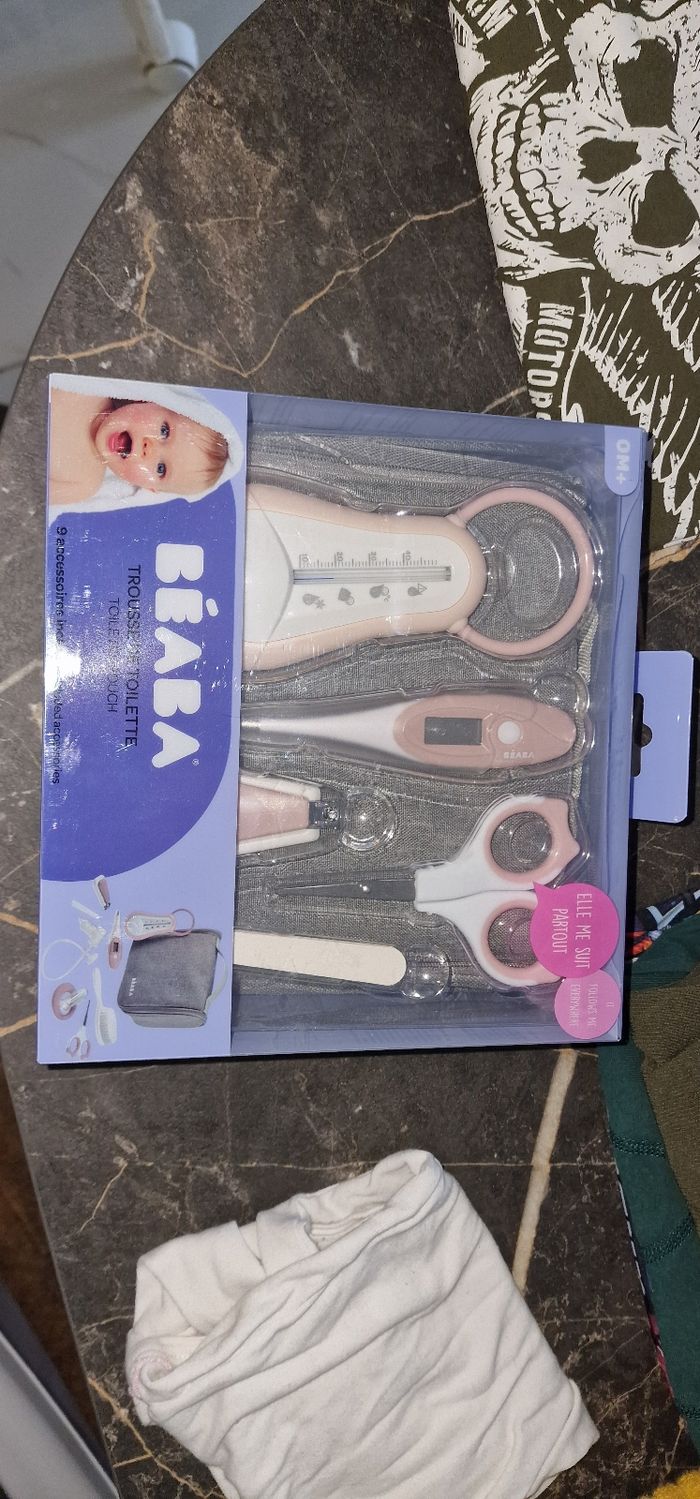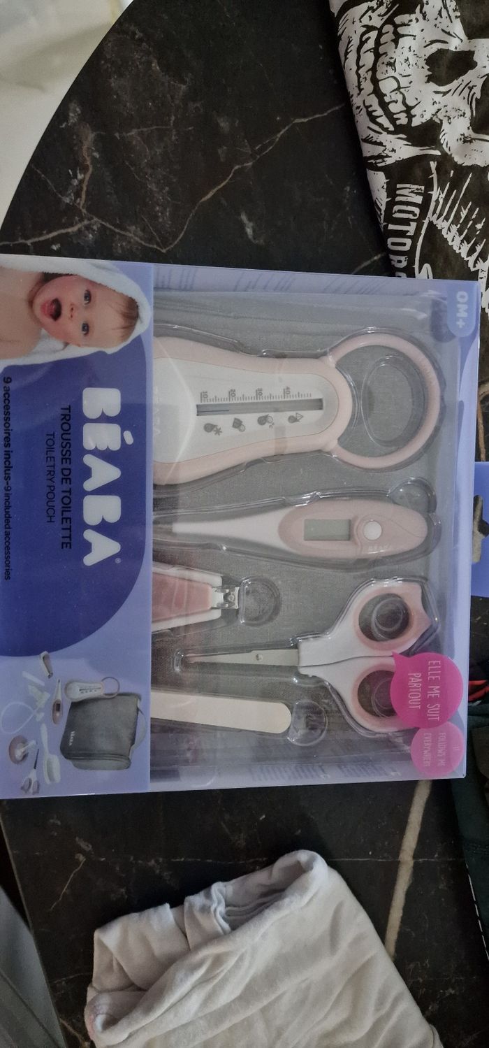 Trousse naissance beaba rose neuf reçu en cadeau mais tardivement j'avais acheter ce qu'il me fallait avant